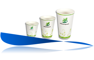 disposable and compostable. The cups are lined with PLA for easy recycling and composting. Traditional paper cups have